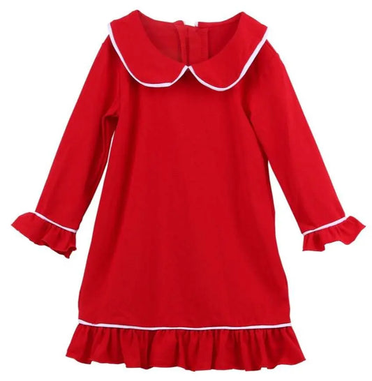Girl’s Navy & White Trim 2PC Ruffle Pajamas