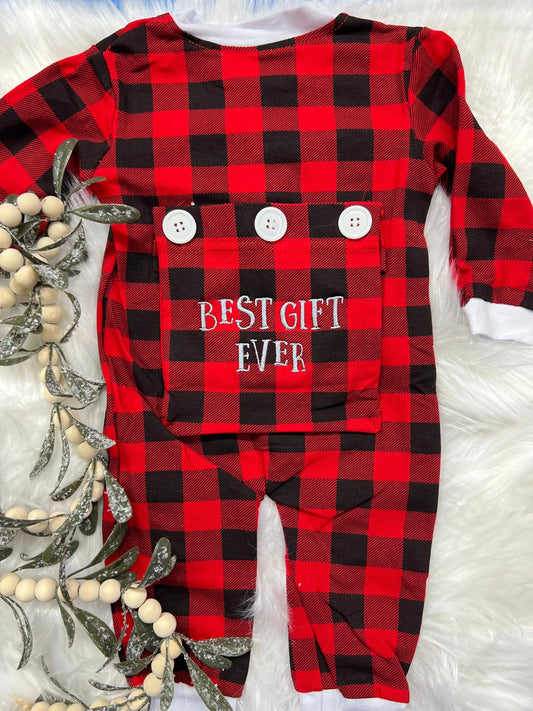 Unisex Buffalo Plaid Christmas Romper With Faux Drop Seat