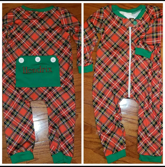 Christmas Pajamas Long John Baby Boy & Girls Plaid Green Butt Flap